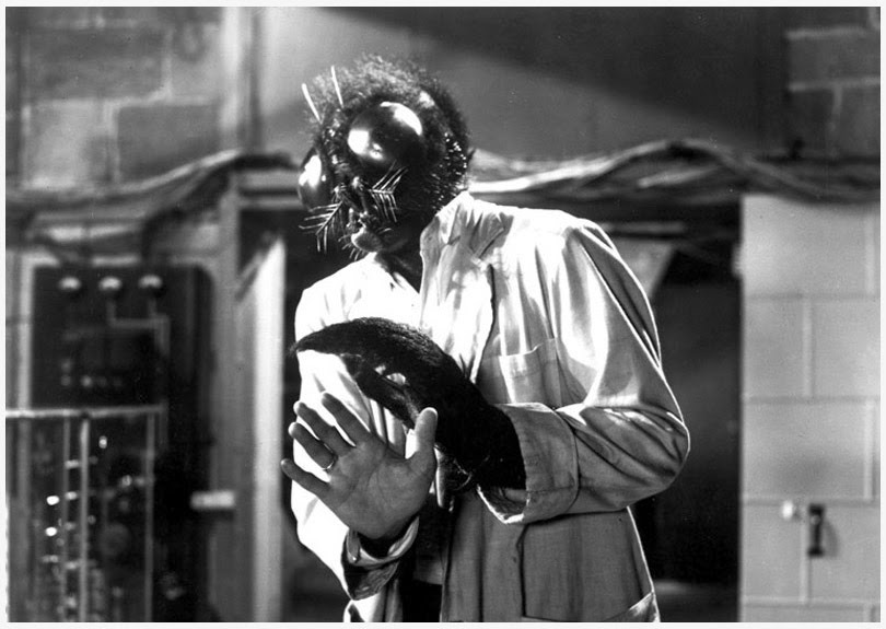 Another image that leaves an indelible impression is when Helene tears off Andre’s ominous black hood to see his hideous fly head for the first time. We are suddenly given the fly’s point of view and watch multi-images of Helene as she screams. It’s hard to express how startling this scene was upon first viewing. The fly’s head may not be much by today’s standards, but it was certainly more than adequate for the time.