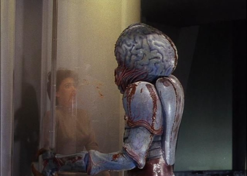 These final sequences not only feature the stunning visuals I mentioned earlier, but they also introduce us to the “monster” of the movie, a Metalunan Mutant bent on destroying our Earthling heroes. The Mutant’s head was actually a rejected design for the Xenomorph in It Came from Outer Space. It’s exposed brain and bulbous eyes helped it become an iconic figure in 1950s science fiction cinema. For the most part, though, the creature is rather silly. The extended, insect-like arms flopping about certainly do not add to the menace.