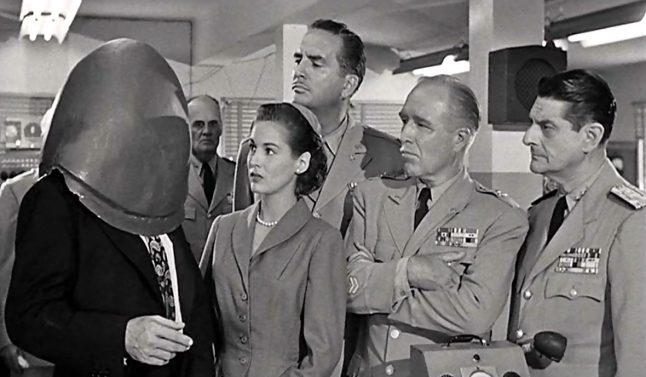 Scene to watch for: Hugh Marlowe tries on an alien helmet and looks like a drunk with a plastic garbage pail on his head.