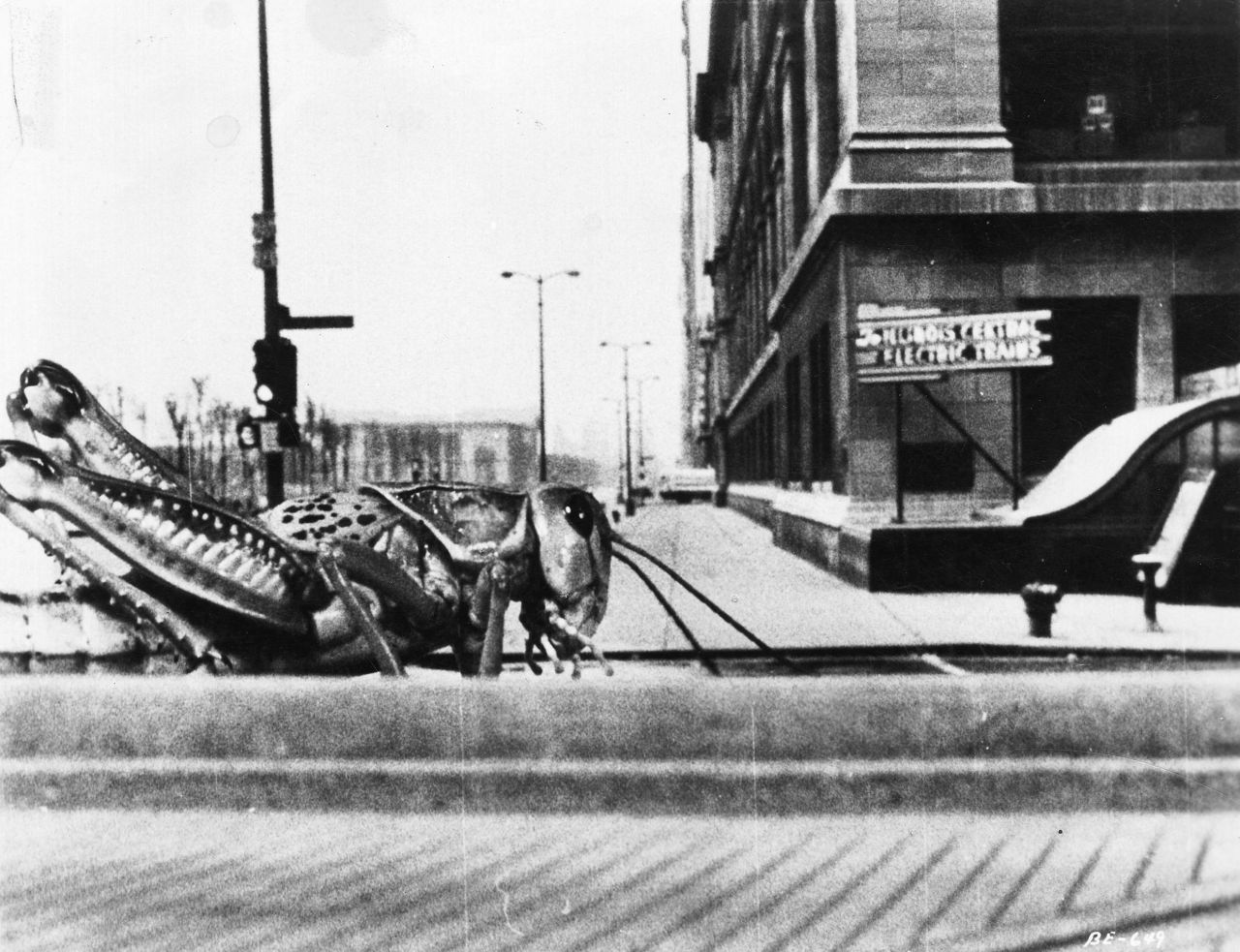 Earth becomes an unholy breeding ground for a swarm of giant man-eating locusts that devour everything and everyone in sight. Conventional weapons are no match for the colossal carnivores whose steel jaws crush soldiers like walnuts. Man is hopelessly outnumbered. As a last ditch effort, military strategists dispatch a B-52 bomber carrying an atomic bomb. Chicago will be turned into a nuclear wasteland unless a brilliant entomologist (Peter Graves) can come up with an alternative in time. (1957, b&w)